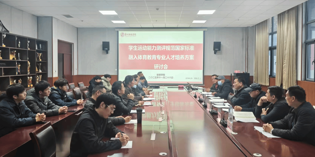 为精准对接《学生运动能力测评规范》国家标准要求,破解体育教育专业人才培养与基层教学需求衔接难题,2025年11月26日下午3点,“学生运动能力测评规范国家标准融入体育教育专业人才培养方案研讨会”在体育学院一楼会议室隆重举行。会议邀请到开封市金明区码头小学校长白聚才、商丘市民权县孙六镇初级中学校长王保进等省内7位中小学校长及基层高级教师参与研讨,体育学院体育教育专业教师代表,2022级、2023级、2024级体育教育专业学生代表共同参会,会议由体育学院副院长刘桂芳主持。