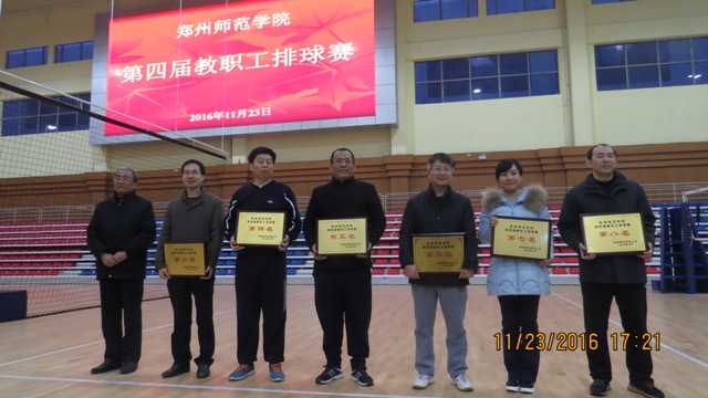 11月23日下午,由郑州师范学院工会主办、体育学院承办的郑州师范学院第四届教职工排球赛在经历了一个月的赛事后,终于在今天下午落下帷幕并举办颁奖典礼。出席本次颁奖典礼的有校长赵健,副书记翟幸福,工会主席弓民,本届比赛裁判长体育学院陶坚院长。