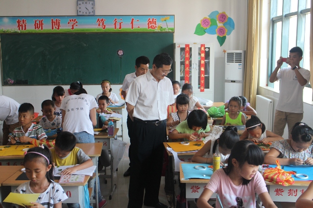 72下午,校纪委书记李树生在校团委书记王珊、体育学院党总支书记马鹏程、院长陶坚的陪同下,来到巩义市紫荆实验学校看望在这里支教的体育学院暑期社会实践师生。