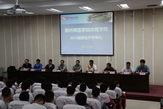 9月23日下午三点,体育学院2014级新生开学典礼在一号楼报告厅举行。体育学院党总支书记马鹏程、院长陶坚、副院长申培新及全体中层领导、辅导员参加。本次会议由团总支书记程亚飞主持。