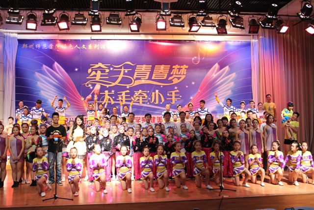 5月31号下午体育学院在七号演播厅迎来了首次牵手青春梦——“大手拉小手”健美操专业汇报演出,郑州师范学院校党委书记于向英、副书记弓民出席汇演,金水区教体局局长王珂、市教育局体卫艺处仝永东、学院宣传部长惠宝德、体育学院院长陶坚和参加演出的各中小学校长莅临现场。