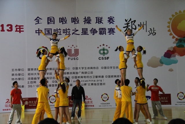 由国家体育总局体操运动管理中心、河南省教育厅联合主办,全国啦啦操竞赛委员会、郑州大学体育学院共同承办的2013年全国啦啦操联赛(郑州站)中国啦啦之星争霸赛于9月25日至26日在郑州大学体育学院举行。