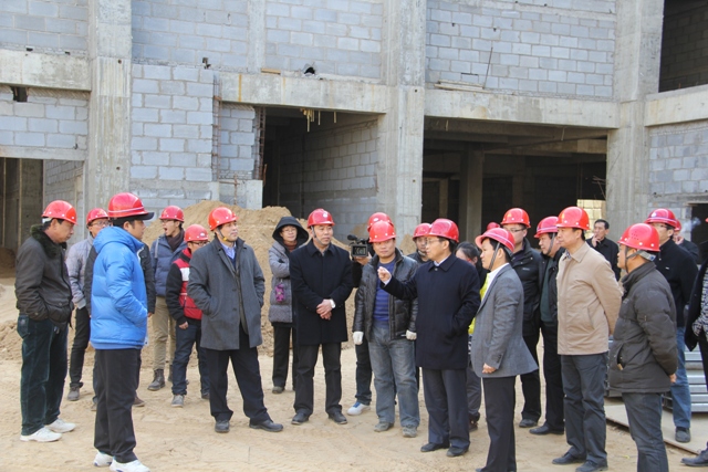 2013年12月31日上午,赵健校长、王北生副校长、孔青副校长来到我校东校区综合训练馆建筑工地视察。在看完最后一根钢梁吊装成功后,基建处、施工方和体育学院的负责同志陪同赵校长等一行视察了综合训练馆的整体工程建设。