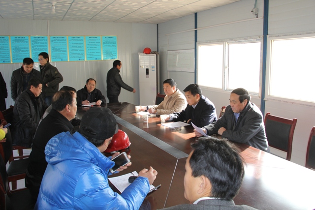 在工地会议室,赵健校长、王北生副校长、孔青副校长就综合训练馆的建设作了重要指示。王北生副校长指出:作为我院标志性建筑之一的综合训练馆,一定要建成省内一流、安全实用、功能齐全的综合活动场所,在室内设计、装饰材料等方面要做到布局合理,高标准,有亮点,突出特色,与国际接轨。孔青副校长指出:相关单位要加强沟通,各负其责,按计划、保质量完成后期工程。要优化功能设计,有效利用空间。赵健校长向施工方及基建处等坚持在施工一线的同志们表示了慰问,并做出重要指示。他说:要理清思路,准确定位,设计要一体化,要庄重、大方、环保、细致,功能定位不要留遗憾,要按高于训练且能承接比赛的标准进行各功能区域的设计。最后赵校长要求:加强合作,严把质量,细化设计,全面考虑,在2014年这一关键年,打一场漂亮仗!