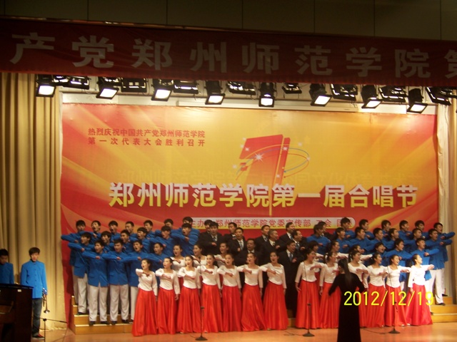 12月19日晚七点,郑州师范学院第一届校园合唱节决赛在七号楼演播厅举行。校领导于向英、赵健及党委成员出席此次比赛。