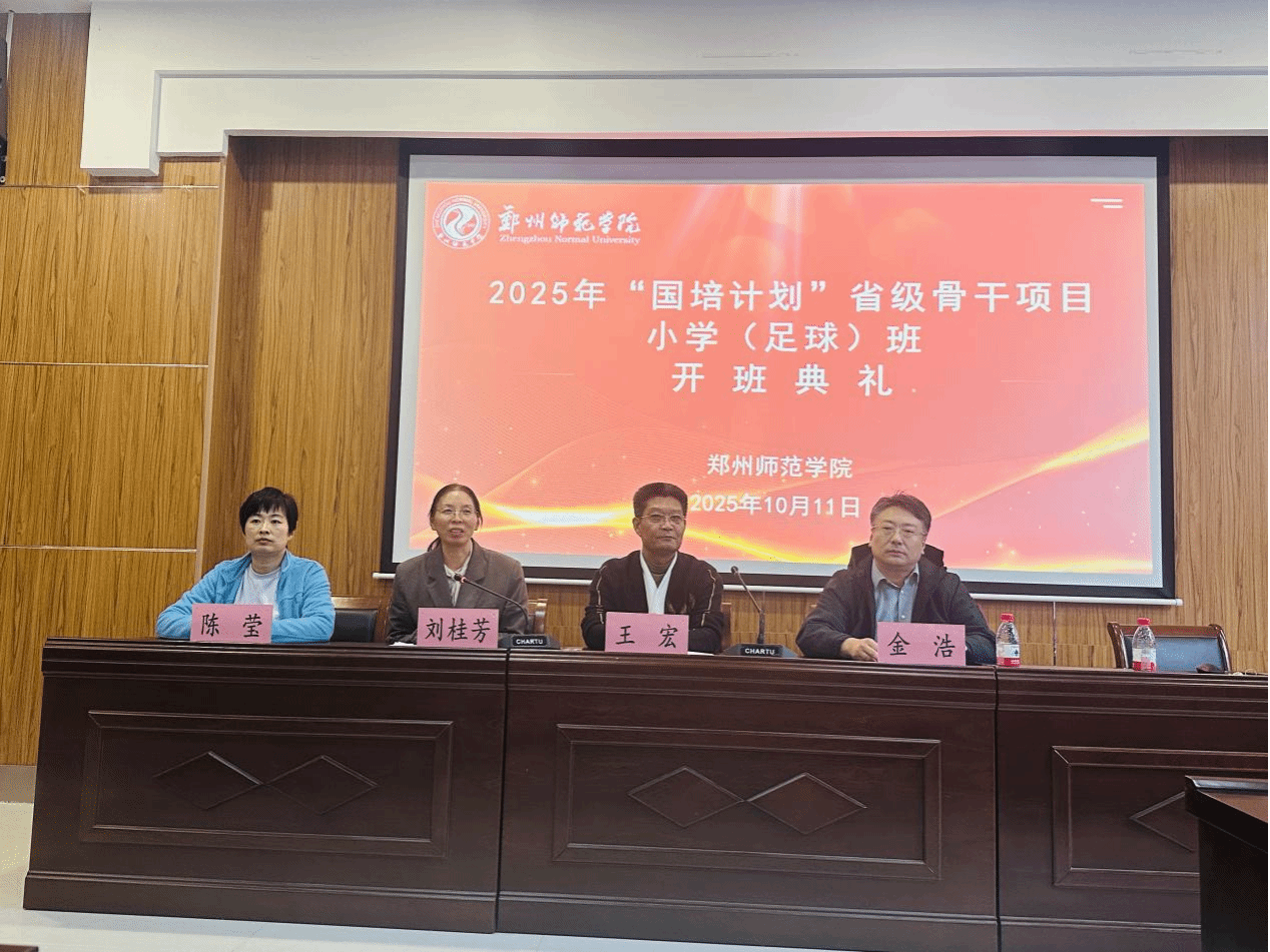 为深化体教融合,夯实农村小学足球教育根基,10月11日,2025年“国培计划”农村骨干教师能力提升省级骨干教师小学体育(足球)课程开班仪式在郑州师范学院体育学院举行。体育学院领导、班主任老师及全省4个地市的50名农村小学体育骨干教师参加仪式。