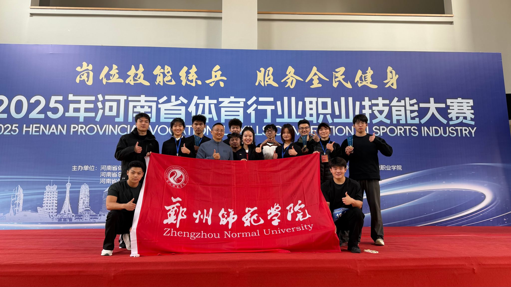 2025年10月24日,由河南省体育局、河南省总工会、河南省体育总会联合主办的2025年河南省体育行业职业技能大赛在河南机电职业学院体育健康学院正式拉开帷幕。郑州师范学院高度重视此次赛事,组建专业参赛队伍,由院长王建永亲自带队,休闲体育专业高修鹏老师担任教练,选派多名休闲体育专业学生参赛,在赛场上展现了扎实的专业技能与良好的精神风貌,最终斩获多项荣誉,为学校休闲体育专业建设再添亮眼成果。