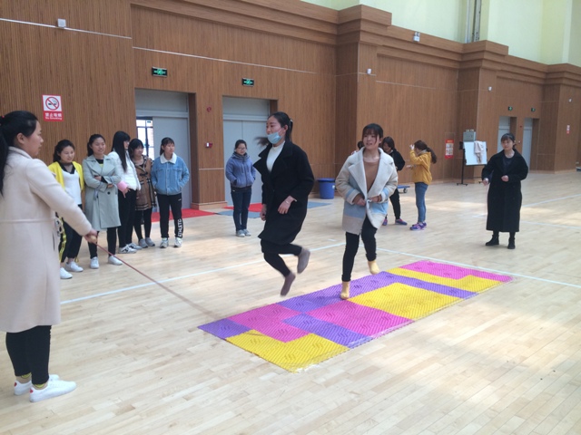 跳绳比赛项目分为:单摇、双摇、四人指压板跳绳。单摇赛中,选手们飞快地挥舞着手中的跳绳,使出浑身解数,尽情展现跳跃绝技,在一分钟的时间内,与对手展开了一场速度与激情的较量。双摇赛更是考验选手们的技术,他们个个都拿出看家本领,比速度,比耐力,比技巧,比气势,尽情展示自已的风采。一时间场上欢呼声、加油声此起彼伏,一浪高过一浪。最扣人心弦的莫过于四人指压板跳大绳赛了,在原有的基础上增加了难度,又考验了大家的配合程度,只见选手们一个接一个跟着甩绳的节奏,穿梭在长绳中,全然忘记了在指压板上的疼痛。经过几番角逐,教科院的靳晴以230个夺得单摇赛冠军,化学化工学院的刘亚雯夺得双摇赛冠军、文学院的秦瑜娇夺得双摇赛季军,四人指压板跳绳冠军由化学化工学院夺得,季军由特殊教育学院、信息科学与技术夺得,亚军由信息科学与技术学院、经济与管理学院夺得。